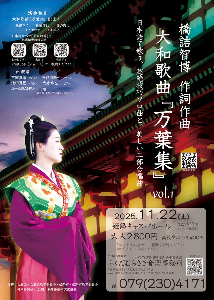 橋詰智博 作詞作曲 大和歌曲『万葉集』演奏会 vol.1 日本語で歌う、超絶技巧ソロ曲と、美しい二部合唱曲
