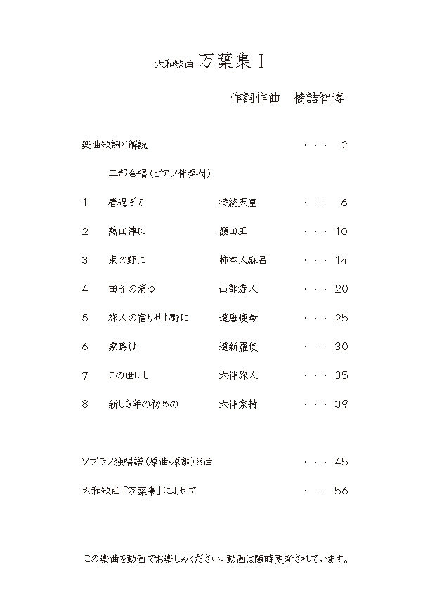 大和歌曲 万葉集 一 楽譜 – 2025/6/10